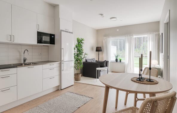 Här bor du själv i din lägenhet, med ständig närhet till personalstöd och umgänge efter dina behov. Du bestämmer över ditt boende och din lägenhet, vår roll är att hjälpa till att ordna så att det känns bekvämt och tryggt. Med grund i socialtjänstens vårdplan utformar vi en genomförandeplan tillsammans med dig utifrån dina individuella mål. Två kontaktpersoner håller i helheten, sköter kontakt med personal och socialtjänst och hjälper till att planera dina dagar. Sedan finns hela personalgruppen här för att stötta dig i vardagen.
